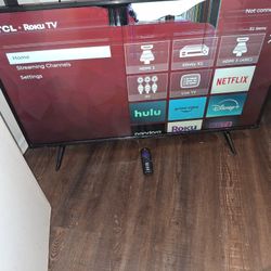 40" TCL Flat screen smart TV with remote and damage on Top right hand corner.