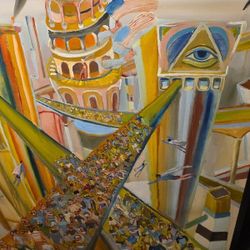 Título: Avenida 9 de Julio | Tamaño: 93 x 130 cm | Técnica: Acrílico sobre lienzo | Estilo: Cubismo contemporáneo