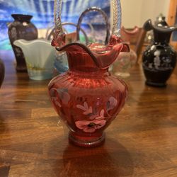 FENTON ART GLASS PINK CHIFFON OPALESCENT RIB OPTIC BASKET. UPPER EDGE AND HANDLE ARE VIOLET. DESIGNED BY KIM PLAUCHE$145Chesterfield, VA