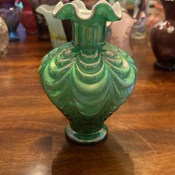 Vintage Fenton iridescent Glass Emerald Green Cased Drapery 7.5 Inch Vase$100Chesterfield, VA