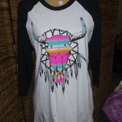 Crazy Train Women's Size Medium Baseball T-Shirt Skull Dream Catcher Graphics
