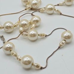 Vintage Synthetic Pearl Long Necklace 14K Gold Plated Elegant Fashion Jewelry $50Danville, VA