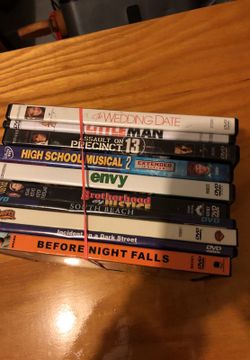 10 different movies ranging from High school musical 2, Wedding Date, Envy, and Before Night Falls. All for five dollars$5Norfolk, VA