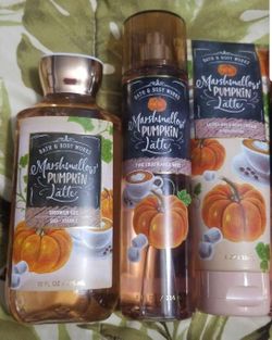 3 pc. Bath & Body Works Marshmallow Pumpkin latte Set (Spray, Cream, & Shower Gel)$45Norfolk, VA