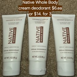 Native Whole Body cream deodorant $6.ea or $14 for 3$6Newport News, VA