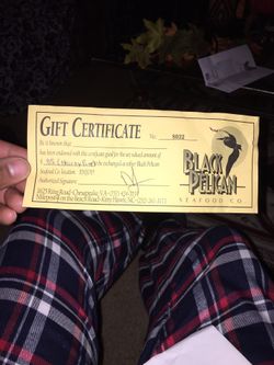 Gift certificate for black pelican$35Chesapeake, VA