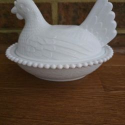 PENDING Vintage Milk Glass Chicken/Hen Trinket Dish with Lid by Indiana Glass$23Virginia Beach, VA
