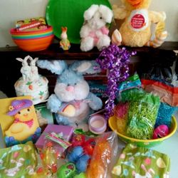 Easter Bundle 🐰 Plush Stuffies Eggs Cards Ribbon Bowls Plates Grass Towels Decor$15Chesapeake, VA