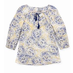 New Directions Weekend Boho Print Blouse XL | Blue Yellow Peasant Top$5Virginia Beach, VA