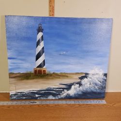 Fantastic Original Art Lighthouse Ocean Wave Seaside oil on canvas$60Virginia Beach, VA