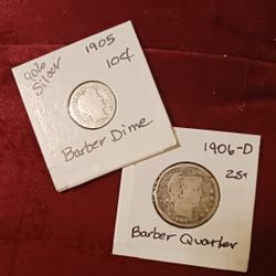 Real Silver 1906-D & 05 Barber Quarter + Dime Poss. Error $14Franklin, VA