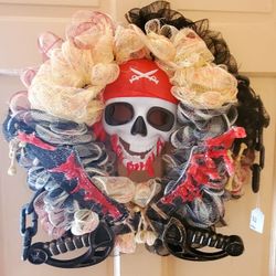 Zombie Pirate Halloween Deco Mesh Wreath. Handmade And Detailed. $30Norfolk, VA