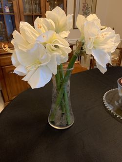 Glass vase with etched flowers$20Virginia Beach, VA