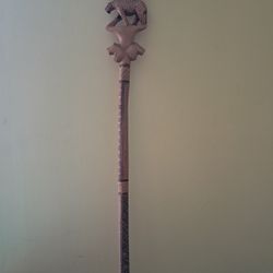 VTG Animal Leopard Giraffe Hand Carved Painted Wood Walking Cane African ? Kenya ?$10Virginia Beach, VA