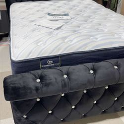 JH-$39 Down Payment For Financing Black Tufted Velvet Upholstered Queen King Bed With Storage $39Newport News, VA