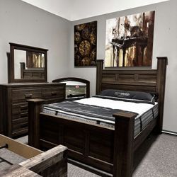 AP🎉 Queen Poster Bedroom Set - Dark Brown- 4-Piece (Bed, Dresser, Mirror, Nightstand) Financing & Delivery $1,279Chesapeake, VA