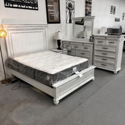 PH💥$49 Down Payment for financing 👉Realyn Whitewash Farmhouse Style Queen King Bed With Storage Nightstand Chest Dresser With Mirror Bedroom Set $49Chesapeake, VA