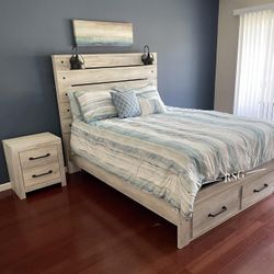 LH π$39 Down Payment For Financing π Farmhouse Style Whitewash Queen King Bed With Lamp, Nightstand, Chest, Dresser With Mirror Bedroom Set $39Newport News, VA