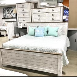 7 Piece Queen Sized Whitewashed [nightstand, Dresser,mirror,panel Bed] Bedroom Set💯 New Brand 🆕 $39 Down Payment 🤩On Display🏠$1,339Virginia Beach, VA