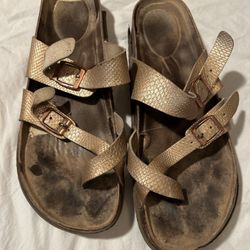Broken in gold hippy sandals size 8 womens birkenstock look alike strap casual$10Norfolk, VA