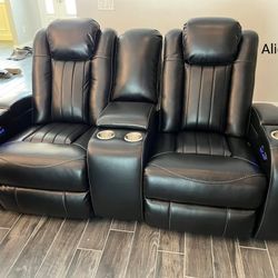 LH 👉$39 Down Payment For Financing 👉 Caveman Black Leather Power Reclining Sofa And Loveseat Home Theater Movie Seating $79Chesapeake, VA