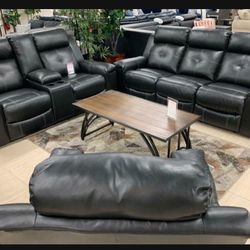 Black Faux Leather Reclining Sofa & Reclining Loveseat with Console | Living Room Set 🌟🌟🌟 Brand New 👍 Fast Delivery 🚚 $1,489Newport News, VA