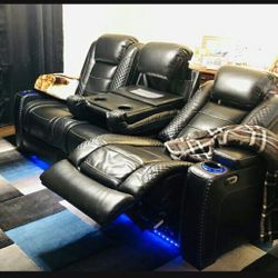 Black Leather Drop Down Table, Power Adjustable Headrest , LED Light Power Reclining Sofa | Game Room~ Living Room 💥 Brand New 💯 Special Price 📣$1,849Virginia Beach, VA