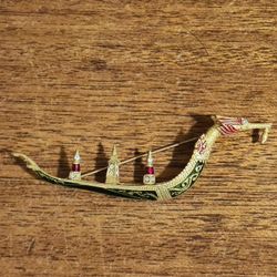Thailand Ceremonial Dragon Boat Red Enamel Goldtone Rhinestone Brooch SIGNED$10Norfolk, VA