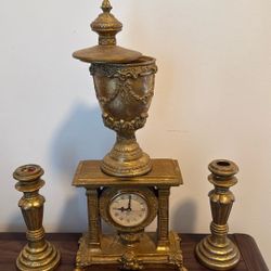 Decorative Clock In Gold-Trim Frame /Vase with Lid Gold Trim Candle Holders (2) &$10Norfolk, VA
