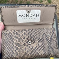 Mondani New York trifold wallet featuring a brown and tan snakeskin (python-style) print.$20South Norfolk, VA