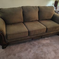 Olive Green Couch Wooden Trim and Legs$100Virginia Beach, VA