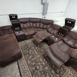 Preowned 6pc grey leather reclining sectional $875Virginia Beach, VA