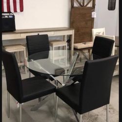 β‘οΈ Top Glass Kitchen Table & Metal Frame Black ChairsβοΈ Brand Newπ― On Displayπ Dining Room Set β