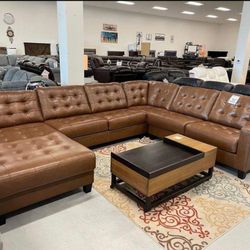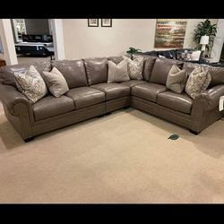 Genuine Leather Modern Brown Tone Huge Couch Sectiona With LAF/RAF Chaise By Ashley🔥 New Brand 👌On Display🏠Financing✅$3,099Norfolk, VA