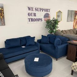 Blue Enerlin Loveseat Sofa And Ottoman💥 3 Pc Living Room Set Velvet🤩 Brand New✅ Financing Options 🫵$1,218Chesapeake, VA