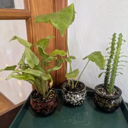 Set Of Three Speckled Pots With Plants$30South Norfolk, VA