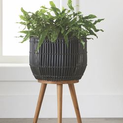🪴🖤 Black Round Resin Planter & Stand Set with Wood Legs – Brand New in Box! 🖤🪴$25Norfolk, VA