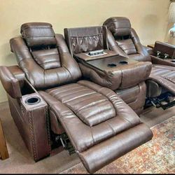 Brown Power Reclining Sofa or Loveseat Couch ⭐No Needed Credit Check 💛 $39 Down Payment with Financing