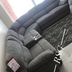 Power Reclining Sectional Couch Fabric Material By Benchcraft Furniture 🌟No Needed Credit Check ⚡ $39 Down Payment with Financing