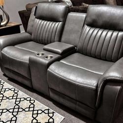 LH π$39 Down Payment For Financing π Ashley Gray Leather Power Reclining Sofa And Loveseat With Bluetooth Speakers $39Portsmouth, VA