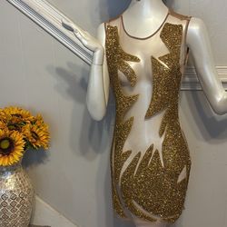 evening, new year’s eve party dress, SEXY, sheer, sequins, glitz, and glamour, gold size medium ODU area$200Norfolk, VA