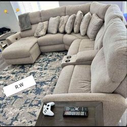 Stone Colored Large Power Reclining Sectional With Adjustable Headrest, Cup Holders, USB, Storage Console💥💥 New Brand 👌On Display🏠 Financing✅$2,929Virginia Beach, VA