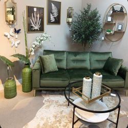 Modern Velvet Navy/Moss Color Sofa By Ashley🔥New Brand 👍On Display 🏠Financing Options👌$689Norfolk, VA