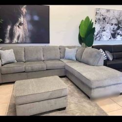 Casual/Modern Style Off Gray Cozy L Shaped Sectional With Chaise And Ottoman☑️ Living Room Set🔥 Fast Delivery 💯 On Display 🏠$1,238Virginia Beach, VA