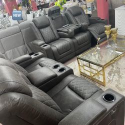 Ashley Gray Modern Hyllmont Power Reclining Sofa And Loveseat☑️ USB Port, Drop Down Table , Cup Holders, Light🔥 $39 Down Payment 💥$2,959Portsmouth, VA