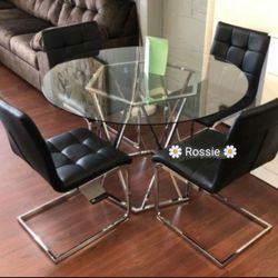 Showroom Available🏠 Top Glass Round Dining Kitchen Table And Chrome Black/White Chairs🌟5 Piece Kitchen/Dining Set🥂Fast Delivery 🚚 $839Hampton, VA