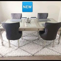 Silver/Gray Upholstered Chairs And Tabletop Glass Extension So Chic Silver Dining Table 👍5 Piece Dining Room Set/kitchen🌟On Display 🏠Delivery 👍$1,919Norfolk, VA