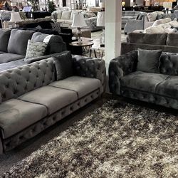 $39 Down with Easy Financing or $1599 gets this Brand New Silver Nefertiti Sofa and Loveseat Set by FOA. No credit. Zero interest. Fast delivery.$39Chesapeake, VA