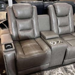 Living Space Theatre Style Power Reclining Gray Leather Sofa And Loveseat Set ⭐$39 Down Payment with Financing ⭐ 90 Days same as cash$39Virginia Beach, VA