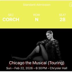 tickets, Chrysler Hall, Tonight, February 21 8 O’clock Great Seats Chicago the musical $130Norfolk, VA